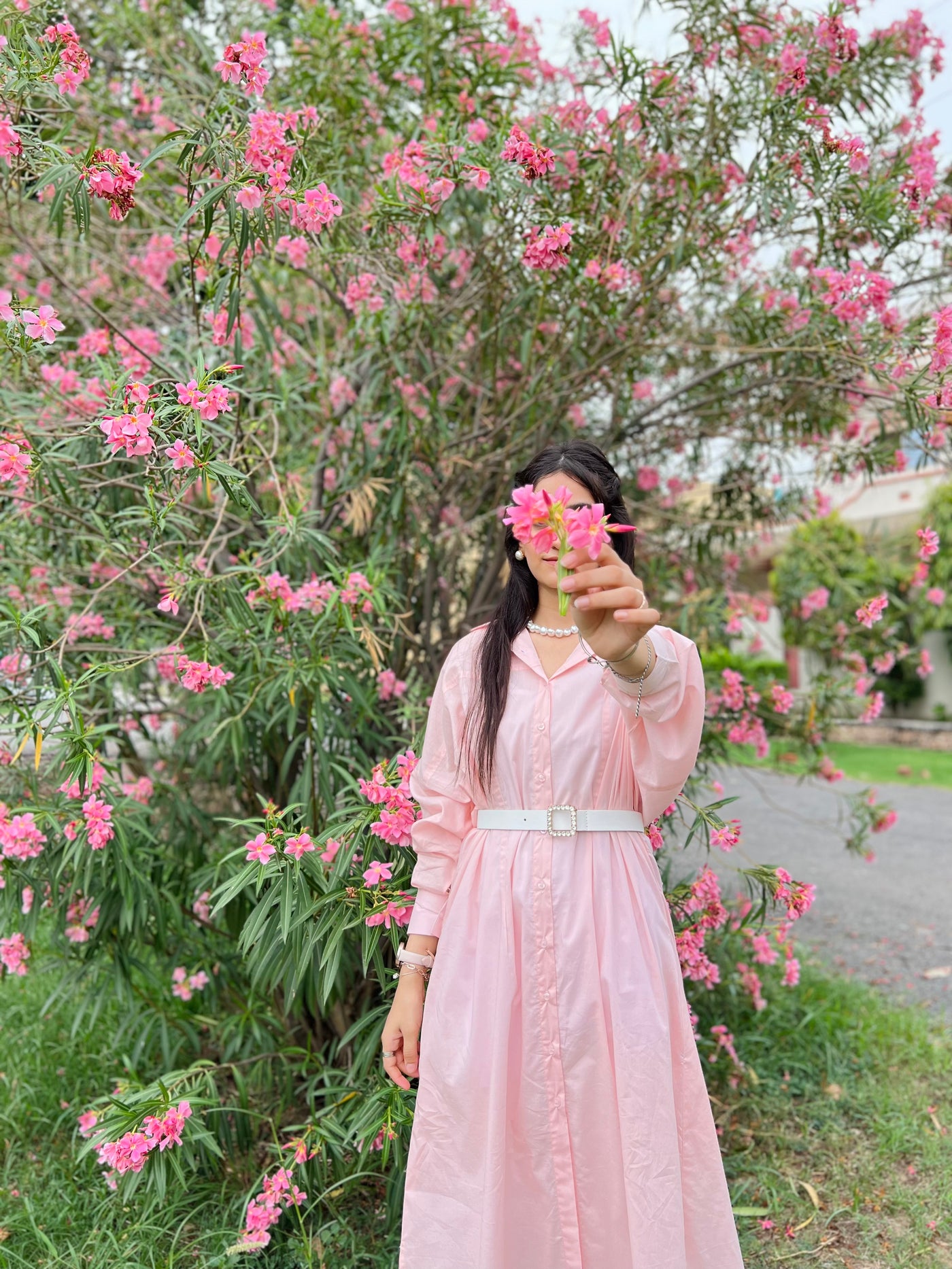 A chic pink button-down shirt that embodies elegance and style, perfect for adding a touch of sophistication to your wardrobe.